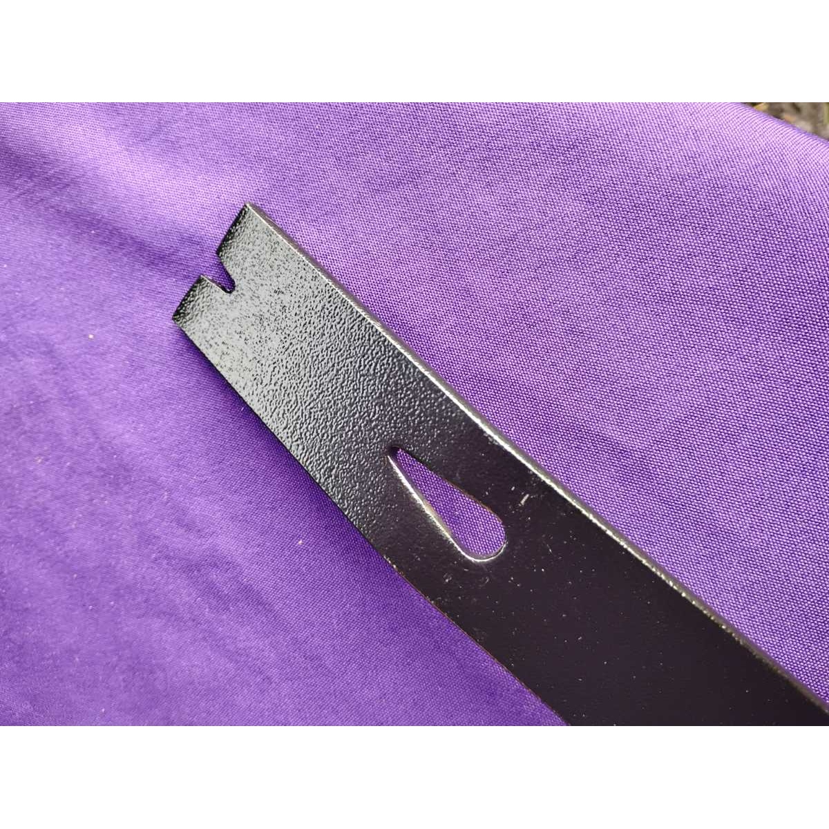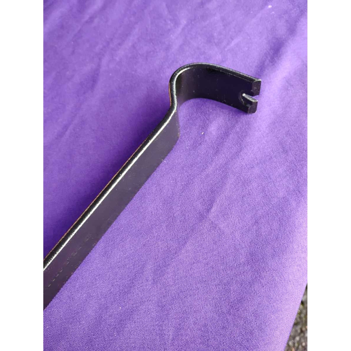 This lever is made of hardened steel with a single curved end and flattened points, used to force two objects apart or gain mechanical advantage in lifting; often the curved end has a notch for removing nails.