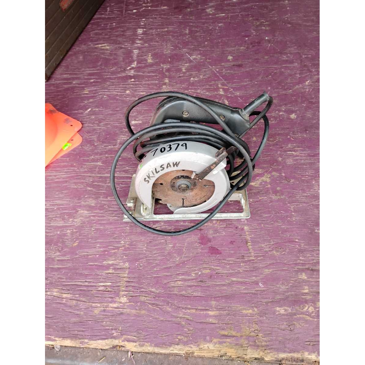 The portable circular saw is used for making straight cuts through materials such as lumber and sheet materials. Specialty blades can be attached for cutting metal or concrete.